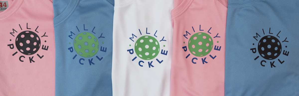 Create your own Milly PB Shirt. Choose the size, color and logo options below! Front Logo options include the Milly Pickle in Black or Blue/Green as a pocket logo. Back Logo option includes the Milly Pickleball with the GA state outline.